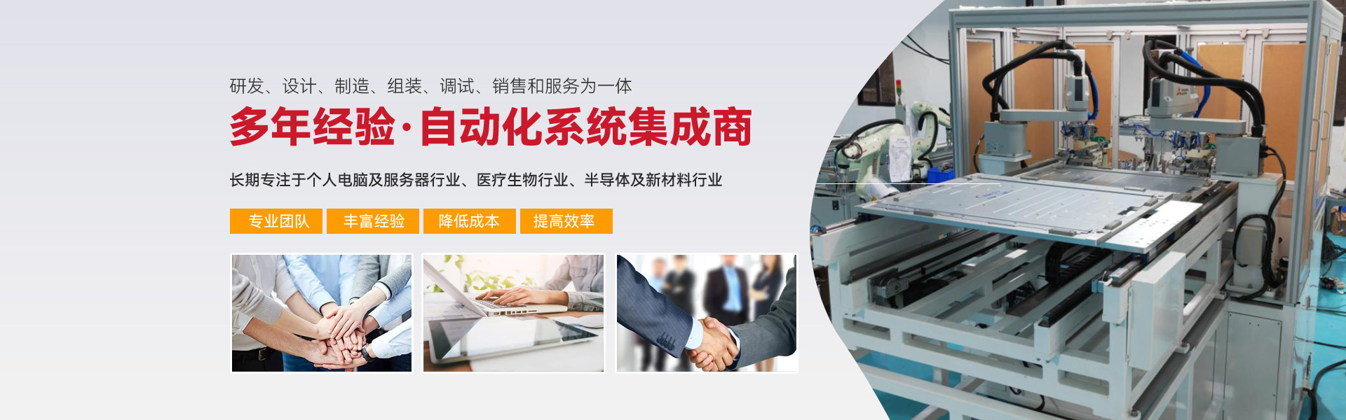 ※ 長期專注亍個(gè)人電腦及服務(wù)器行業(yè)、醫(yī)療生物行業(yè)、半導(dǎo)體及新材料行業(yè)三大行業(yè)的自動(dòng)化組裝、檢測設(shè)備的生產(chǎn)與開發(fā)。
